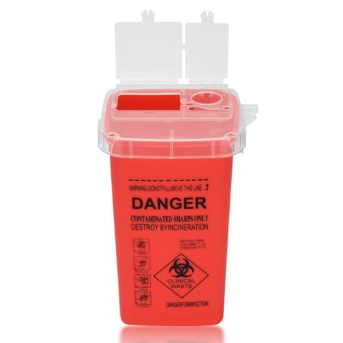 Tattoo Needles Box ATOMUS 1L Tattoo Plastic Sharp Container Tattoo Medical Disposal Biohazard Needle Waste Box Safe Lock Container Tattoo Supplies (1PC, Red)