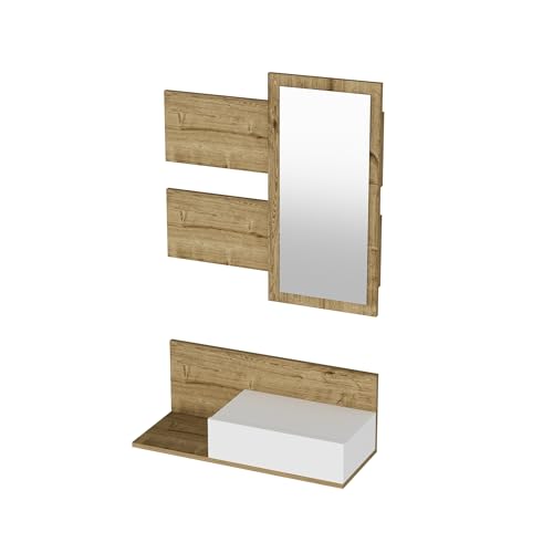 WELL HOME MOBILIARIO & DECORACIÓN Uppsättning av mottagare, melaminbelagda spånskiva, med spegel, i vit färg - Safir ek