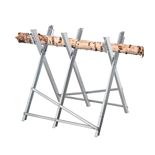 Relaxdays Sågbänk, träsågarbete, vikbar, sågram för motorsågar, HBT: 80 x 80 x 85 cm, träbock, stål, silver