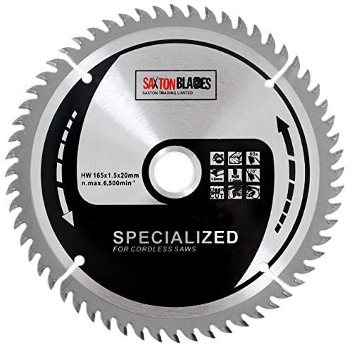 Saxton TCT16560T 165 mm x 60t TCT tunn Kerf trådlös cirkulär sågblad kompatibel med Dewalt Makita