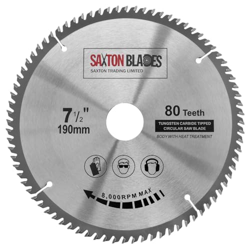 TCT19080T Saxton TCT cirkulärt trä sågblad 190 mm x 30 mm x borrning x 80T för Bosch Makita Dewalt