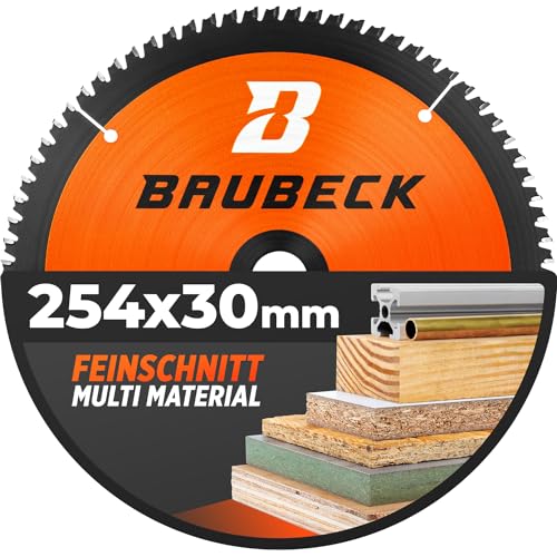BAUBECK 255 mm x 25,4 mm sågblad, fint skuren i trä, metall etc. - TCT 255 mm sågblad x80T - Kompatibel med Bosch Makita Dewalt Festool Freud 255 mm sågblad