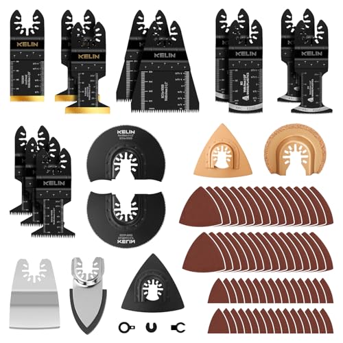 KELIN 82 delar multiverktyg sågblad, multifunktionsverktygstillbehör, Multimaster sågblad med titanbeläggning, japansk tand, bågkant, trä metall multiverktyg tillbehör