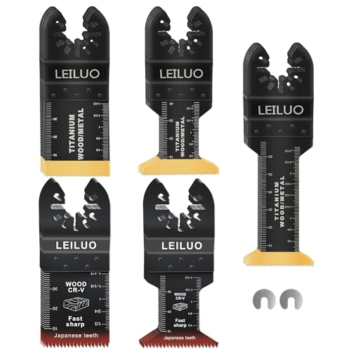 LEILUO 5 stycken titanoscillerande multiverktyg sågblad universella multiverktyg tillbehör för trä och naglar kompatibla med DeWalt Makita Ryobi med mera