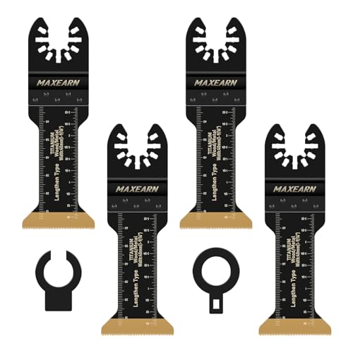 MaxEarn Oscillerande multiverktyg sågblad, 4 delar titan extra långa multiverktyg blad, universellt snabbyte oscillating bladset, oscilleringsverktyg, tillbehör för skärning av metall, trä