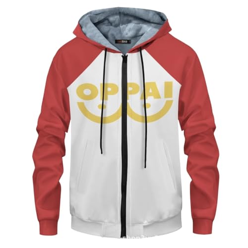 Zhongkaihua ONE Punch Man Cosplay Kostym Saitama Tröja Huvtröja Dragkedja Huvtröjor Långärmad Vadderad Weatshirts, Saitama huvtröja, XXL