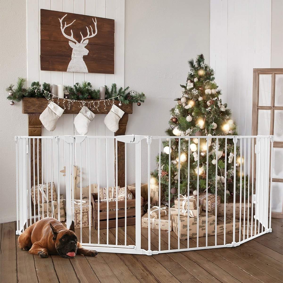 Vit Säkerhetsgrind för Hundar, Hopfällbar 305x35,5x82 cm