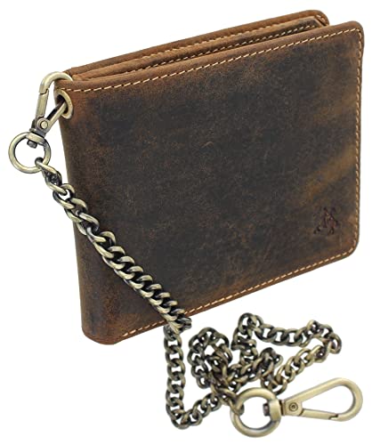 Visconti Motorcykelplånbok i läder med säkerhetskedja RFID Plus Tap and Go CHN, Oljebrun, En storlek