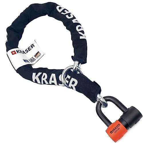 KRASER KR50120 Hänglås Säkerhetskedja Motorcykel Skivlås SRA-godkänd Uppsättning Stöldskydd Hänglås Mini U Solid Ø18 + 13,5 mm 120 cm Kedja, Kraftig Säkerhet.