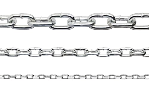 hannger Kedjelänk säkerhetskedja – 3/16 tum × 16,4 fot 304 rostfritt stål kedja – kraftiga metallkedjelås för hängande växter utomhus cykel skotrar släpvagnar grindar och egenskaper – 299 kg belastning