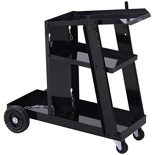 DURHAND Svetsvagn, svetsmobil med 3 hyllor, gasflaskhållare med säkerhetskedja, vagn för svetsapparat för handsvetsning, argonbågsvetsning, svart
