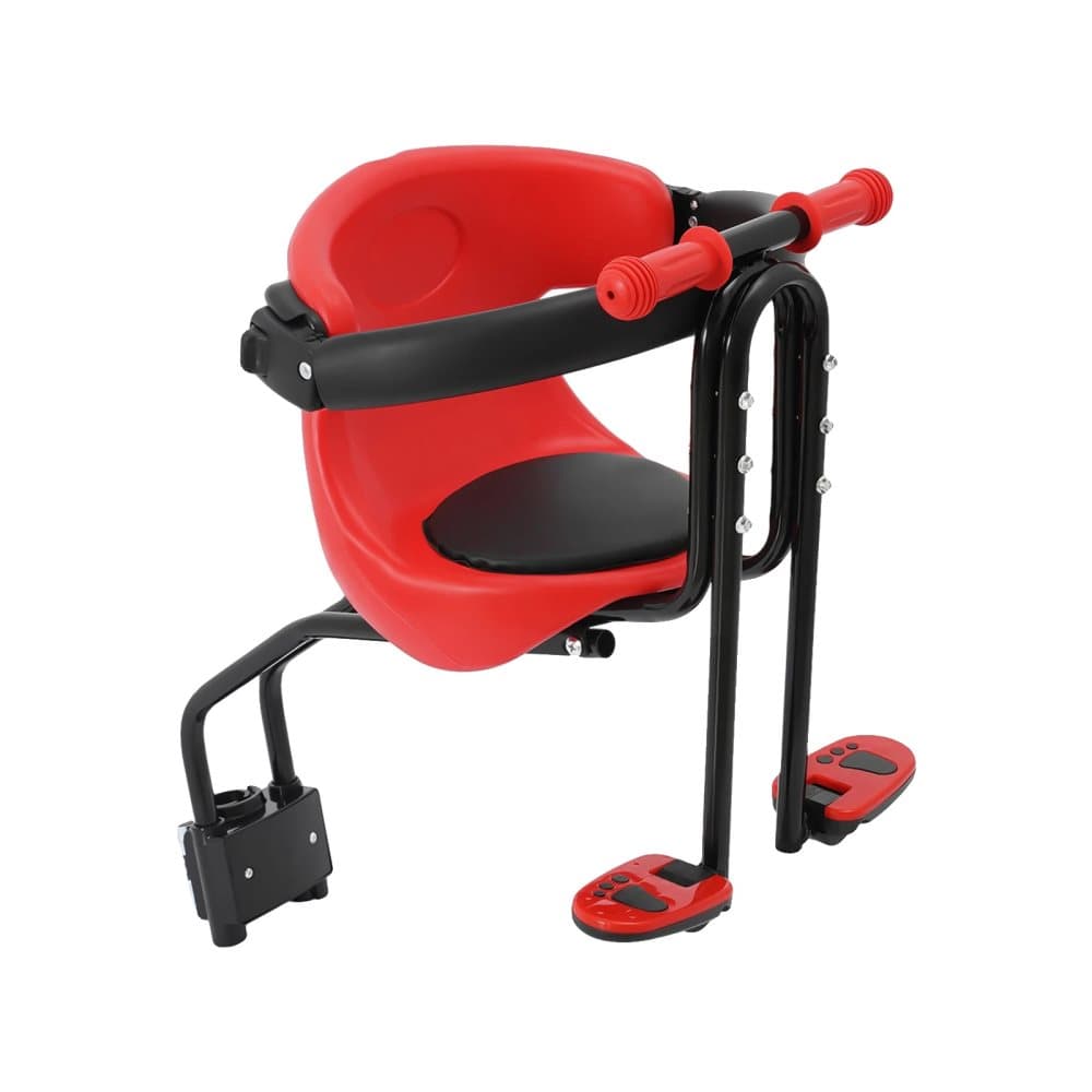 Cykelsäte för barn, justerbart fotstöd, säkerhetssele,Röd