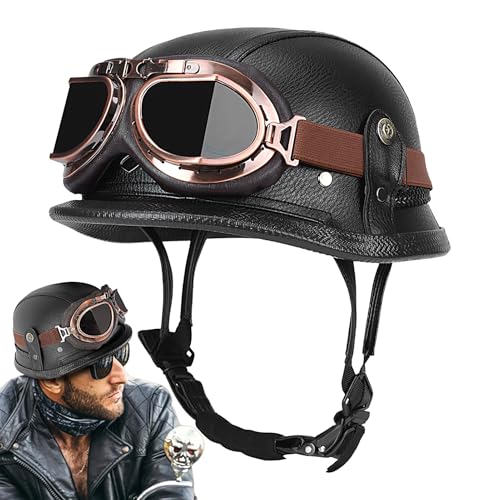Tysk Stil Hjälm - Lättviktshjälm för Motorcykel och Skoter,Ventilerad Halvansiktshjälm Med Andningsbart Inredning Motorcykel Säkerhetsutrustning