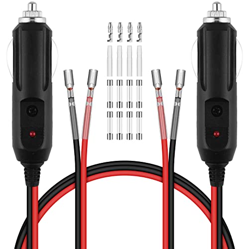 URAQT Cigarettändare Hane Adapter, 2st 28cm 16 AWG Cigarettändaruttag 12V 24V, med 10A/15A säkringar och LED-ljus för bilväxelriktare Luftpump Elkopp bilbil