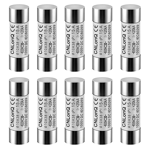 DEWIN smältbar solcell PV-säkring, 10 stycken säkringar 15 A/20 A/25 A/30 A DC PVS-säkring gPV-typ säkringsinsats HSPV-30 10 x 38 mm 1000 V för skydd av sol-PV-system (färg: 15A)