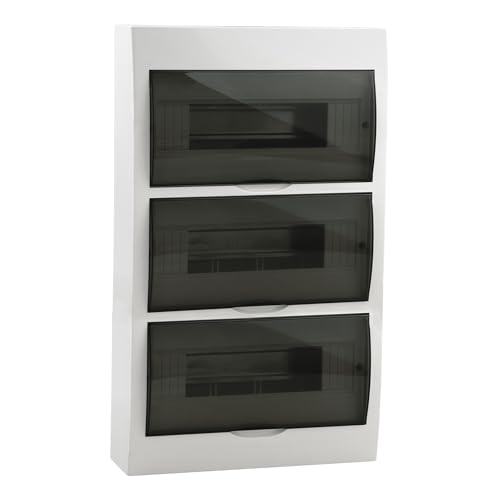 Säkringsbox liten fördelare IP40 ytmonterad underfördelning 3-radig 36 moduler 3 x 12 med väggmonterad DIN-skena