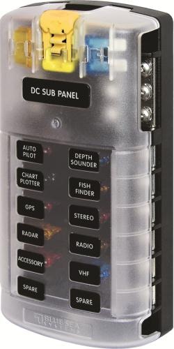 QitinDasen Premium bil 8-vägs säkringshållare, universal standardblad säkringsbox, säkringsblock med lock, 10 st standard plattsäkring, för bil båt Marine Trike (12 V/24 V)