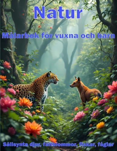 Natur. Sällsynta djur, fältblommor, fiskar, fåglar. Målarbok för vuxna och barn: Dhole, baltisk säl, okapi, ibizahund, domherrar, klockblommor, blåklint, smörblommor, klöver eller prästkragar