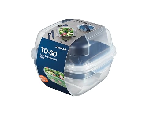 LocknLock TO GO Salladsskål med toppingtray, såskoppar och bestick | 950 ml | 100% luft- och vattentät förvaringsburk | Diskmaskins- och mikrovågsugnssäker | BPA-fri | salladsskål to go