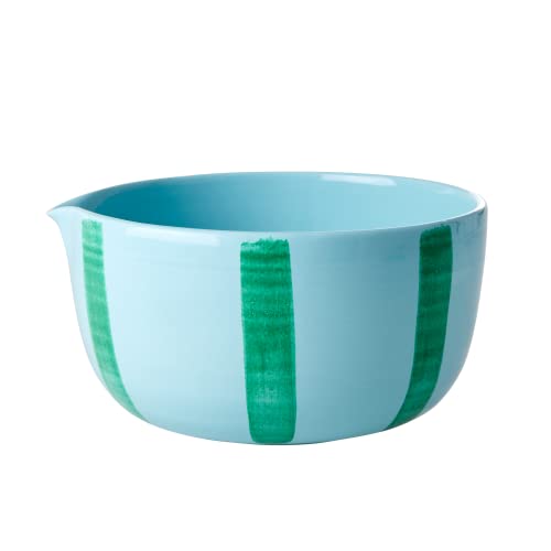 RICE - Keramisk salladsskål - blå med gröna ränder