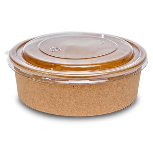 Inoverse 50 stycken kraftiga salladsskålar med lock 1 000 ml, kraft papper salladsskål, engångsskålar salladsmugg, kartongskål för sallader, mellanmål, soppor, flingor, rund hårt papper salladslåda to