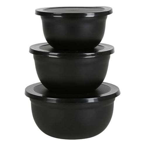 TEAMFAR blandningsskål set om 3, rostfritt stål skål salladsskål med lufttätt lock, svart skålset perfekt för bakning/förberedelse/servering, 4,5 l/2,5 l, diskmaskinssäker