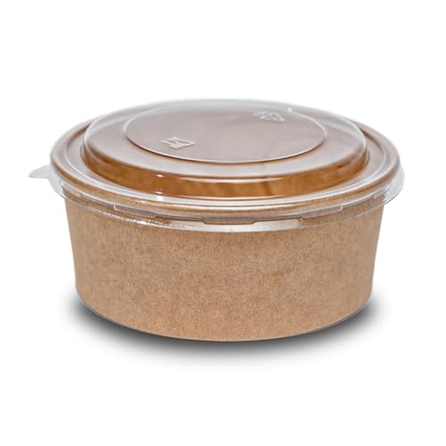 Commerline 500 ml Bio salladsskål salladsskålar | 50 st. Salladsskål skål skål engångs med lock | kartongskål salladslåda kraft engångsskålar (bio_salladsskål_500 ml, 50 stycken)