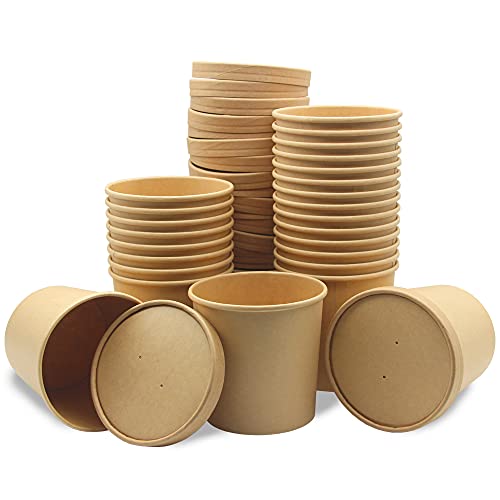 Kraft kartong matbehållare, 25 stycken matkoppar, packa salladsskål, soppskålar, med lock, olje- och vattenbeständig, för nudlar, glass (16oz/450 ml)