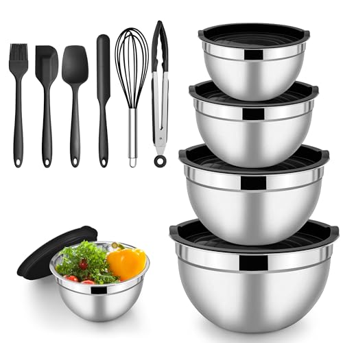 HaWare blandningsskål set om 4, rostfritt stål skål salladsskål med lufttätt lock och silikonbotten, perfekt för matlagning bakning förvaring, stapelbar & diskmaskinssäker, 4,6 l/2,8 l/1,5 l/0,7 l –