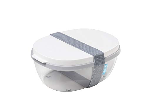 Mepal Ellipse salladslåda - vit - innehållande 1 300 + 600 ml - den perfekta bento-lådan för att ta sallader på vägen - salladsskål med lock