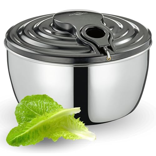 Westmark Salad Spinner – Idealisk för att tvätta, snurra och servera sallad, platsbesparande salladsskål med lock och hällpip, halkfri, 4,4 l – plast, BPA-fri