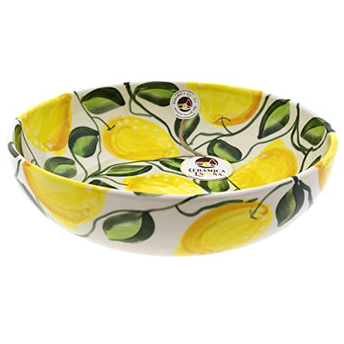 CERÁMICA ESPAÑA | Keramisk salladsskål | Original salladsskålar | Salladsskålar dekoration citroner - modell M01 | 100 % handgjord dekoration | 27x27x7,5 cm