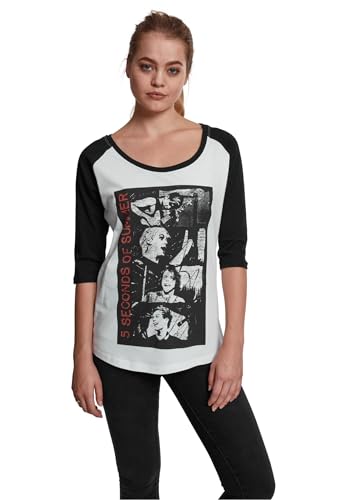 5 sekunder av sommaren dam t-shirt staplad raglan t-shirt med kollage tryck på bandet Wht/Blk Large