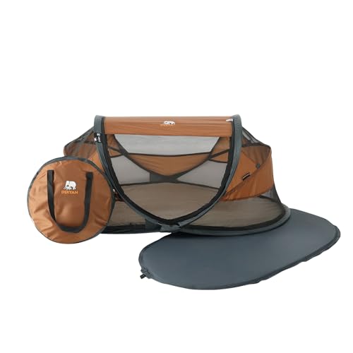 Deryan Babyresesäng med madrass från födseln till 2,5 år – Pop Up babytält placeras på 2 sekunder – inkl. myggnät och resväska – 120 x 75 x 50 cm (karamell)
