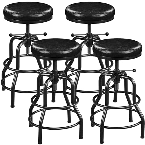 Yaheetech 4 barstolar i vintagestil, justerbar höjd skruvpall 54,5 71,5 cm barstol med tjock kudde som kan belastas upp till 136 kg, diskhöjd för matsal/kök/bar/salong/café, svart