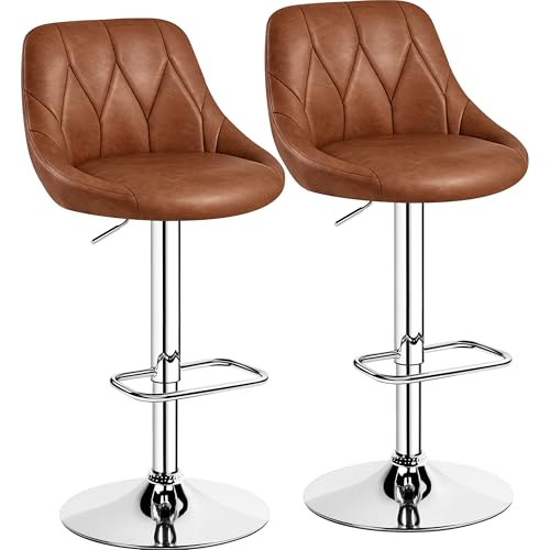 Yaheetech Set med 2 barstolar, justerbar sitthöjd 61,5 cm – 83 cm stoppad pall med vridbar sits, pall med fotstöd för kök/bar/salong/matsal, brun