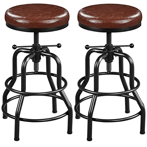 Yaheetech 2 stycken vintage barstolar höjdjusterbar skruvpall 54,5 – 71,5 cm barstol med tjock kudde som kan belastas upp till 136 kg, diskhöjd för matsal/kök/bar/salong/café