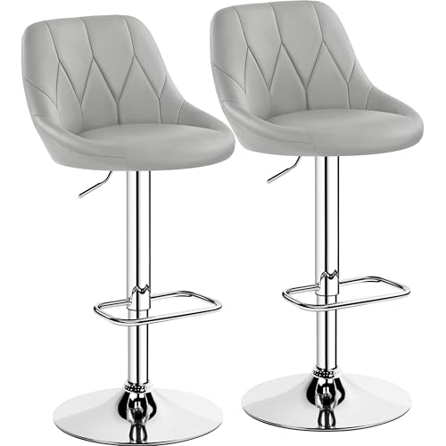 Yaheetech Set med 2 barstolar, barstolar 360° roterbara köksstolar med ryggstöd och fotstöd, barstol PU-konstläder sitthöjd 62,5 cm 83 cm för kök/bar/salong, justerbar höjd, ljusgrå