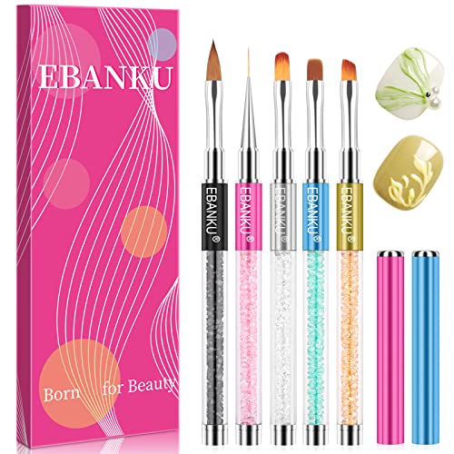 EBANKU 5 st nagelkonst penselpennor set för UV-gel nagelpenna, akrylnagel falska spetsar byggare nagelkonst design målning foder borstar verktygsset, för gör-det-själv nagelkonst salong och hemmabruk