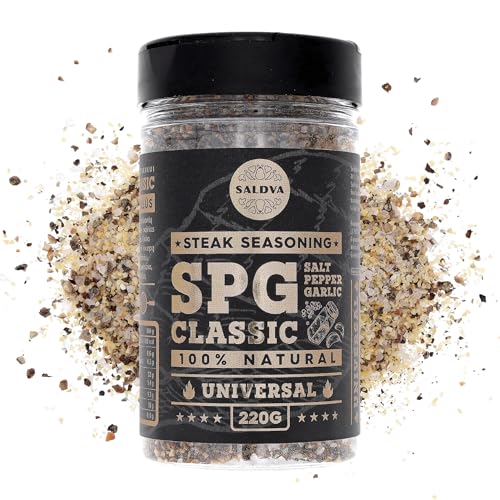 SPG Classic Steak Seasoning Blend - Premium Salt, Pepper & Garlic Seasoning - Crafted for Irresistible Steaks - Large Jar (220g)