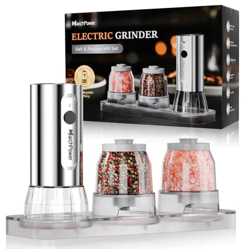 Marchpower Elektrisk Pepparkvarn, Elektrisk Pepparkvarn i Rostfritt Wtål Med USB-C Uppladdningsbar Bas och LED-lampor, Justerbar Salt- och Pepparkvarn Med 100 ml Tvättbar Behållare för Kök