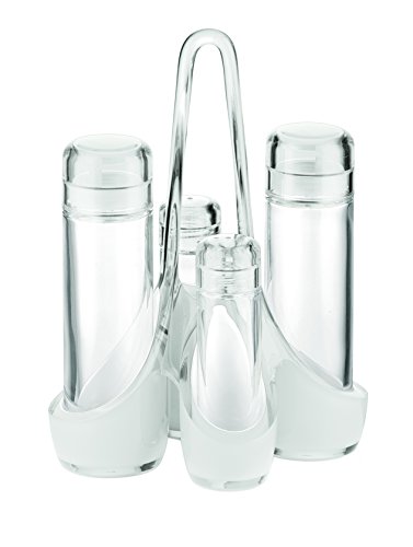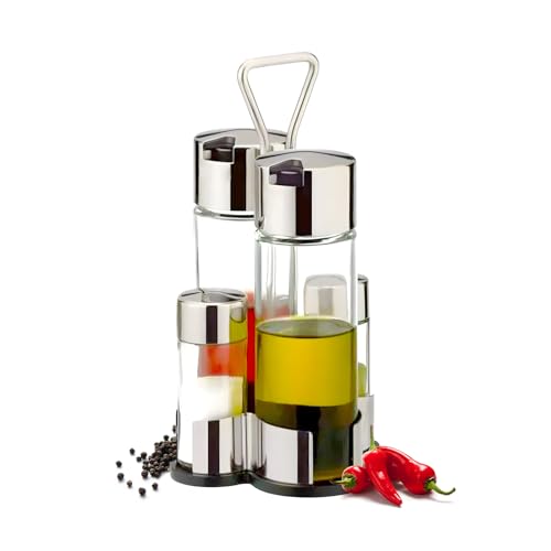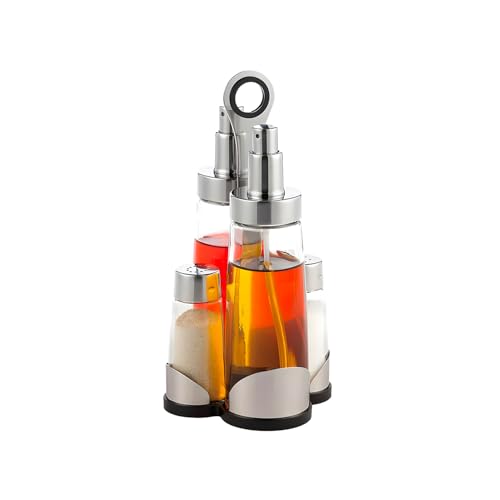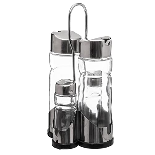 Wintem Glas- och stålbordsset i 5 delar 200/600 ml silver - mått set 22 x 9,8 x 11 cm - Inkluderar behållare för olja, vinäger, salt och peppar och ergonomiskt handtagsstativ