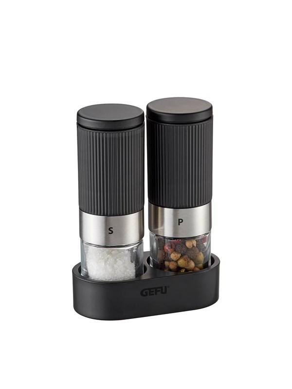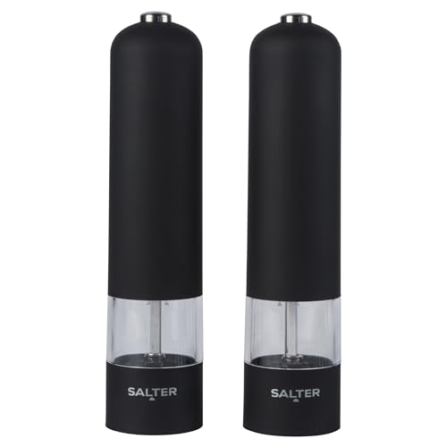 Salter 7524 BKXRUP elektrisk saltkvarn/pepparkvarn-set – enhandsdrift, keramisk mekanism, justerbar malm, fin till grov, BPA-fri, upplyst bas, 60 g salt/30 g peppar, mattsvart