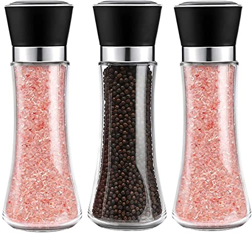 Peppar- och saltkvarn i set med 3, pepparkvarn och manuell saltkvarn kryddkvarn salt- och pepparkvarn med justerbar keramisk slipskiva, kryddkvarn, 18,5 cm