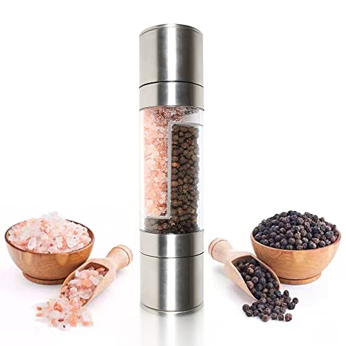 Newaner Dual salt & pepparkvarn set 2 i 1 pepparsaltkvarn, rostfritt stål med justerbar keramisk kvarn, keramisk kvarn (utan salt och peppar)