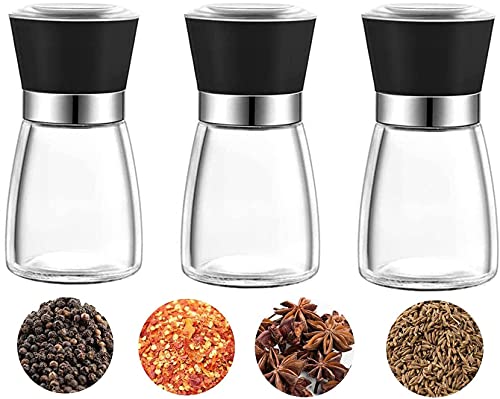 Peppar- och saltkvarn i set med 3, pepparkvarn och manuell saltkvarn kryddkvarn salt- och pepparkvarn med justerbar keramisk slipskiva, kryddkvarn, 13,5 cm