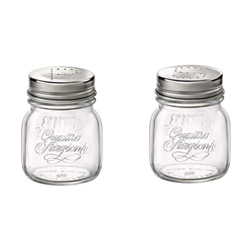 Bormioli Rocco 357760CBD021990 Quattro Stagioni burk med salt och peppar rostfritt lock hylsa av 2, set med 12, glas, klar