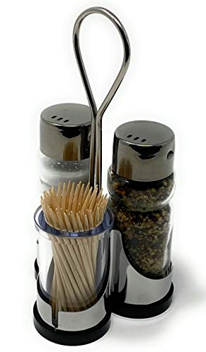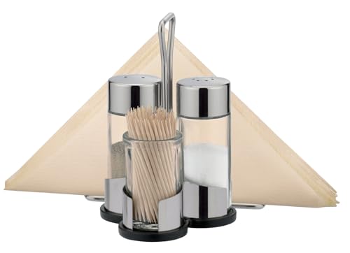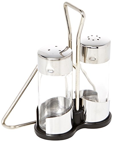 APS 40310 CLASSIC salt och peppar menage, set av ram av rostfritt stål och 2 glasshakar, 10,5 x 6,5 x 16 cm