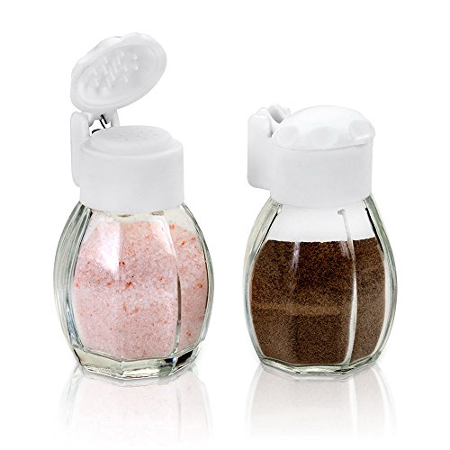 APS minibryggare, salt- och pepparkaksbägare, set med 4 minibryggare i glas med lock i rostfritt stål för salt och peppar, 3,5 x 3,5 cm, höjd 4 cm