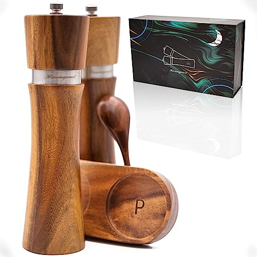 Haramgcourt Salt Och Pepparkvarn Set 22 Cm Akacia Presentförpackningar Peppar Kvarnset Trä Wood Pepper Mill 2st